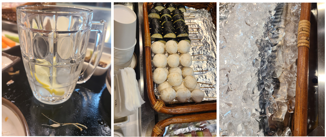 한편으로는 9시지만, 왠지 벌써 많이 늦은 것 같은 느낌도 있습니다. 꼬치구이가 맛있어 보여서 하나 추가 주문하려 했으나 2차는 친구가 낸다고 해서 못시켰습니다. 집에 가다가 길거리에서 파는 꼬치구이라도 하나 사서 먹어야겠습니다. 재료들을 이렇게 눈앞에 펼쳐주고 있으니까 뭔가 계속 주문해야 될 것만 같은 마음의 부담, 먹고 싶은 욕망, 어떤 맛일지 궁금함 등등 다양한 감정이 솟구쳐 오릅니다.